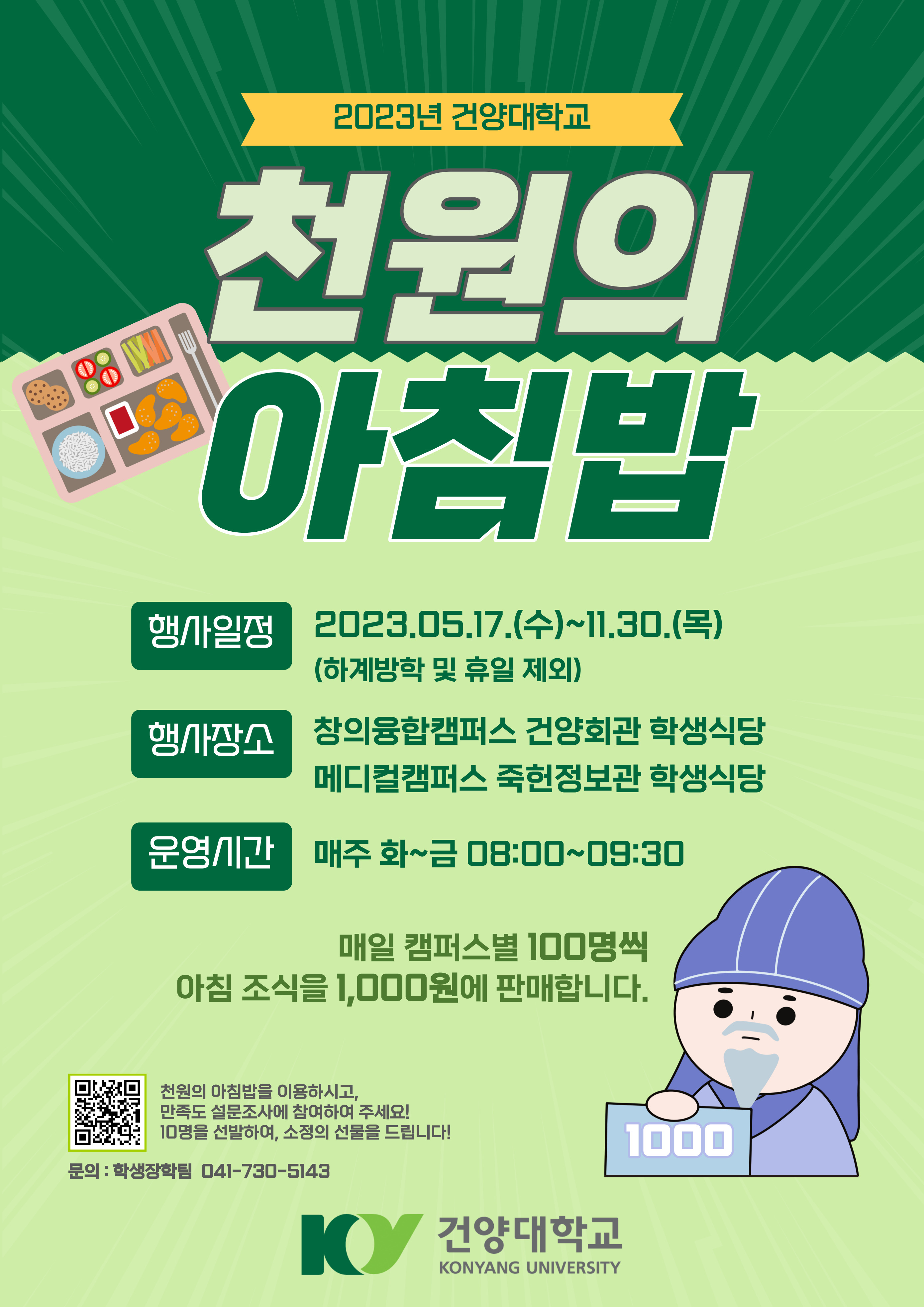 | 제목 | 2023학년도 건양대학교 천원의 아침밥 시행안내 | ||||