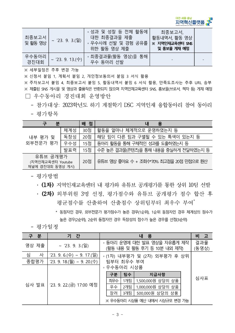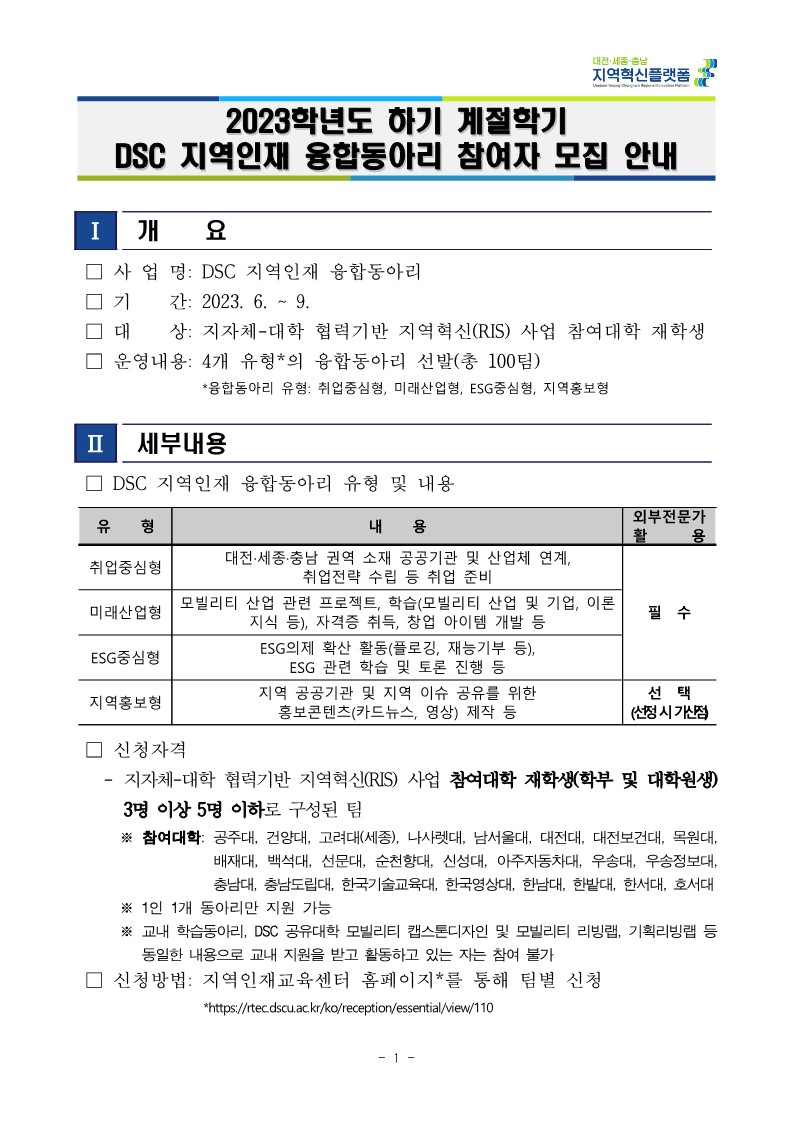 붙임 1. 2023학년도 하기 계절학기 DSC 지역인재 융합동아리 참여자 모집 안내문.pdf