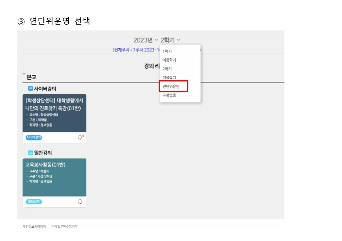 ② 건양대학교 LMS 홈페이지 로그인, 강의실 바로가기 클릭