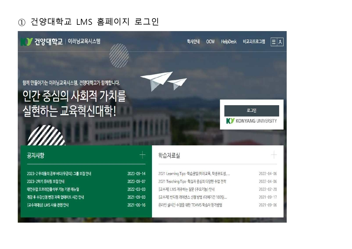 ① 건양대학교 LMS 홈페이지 접속(https://lms.konyang.ac.kr/main/MainView.dunet#main)