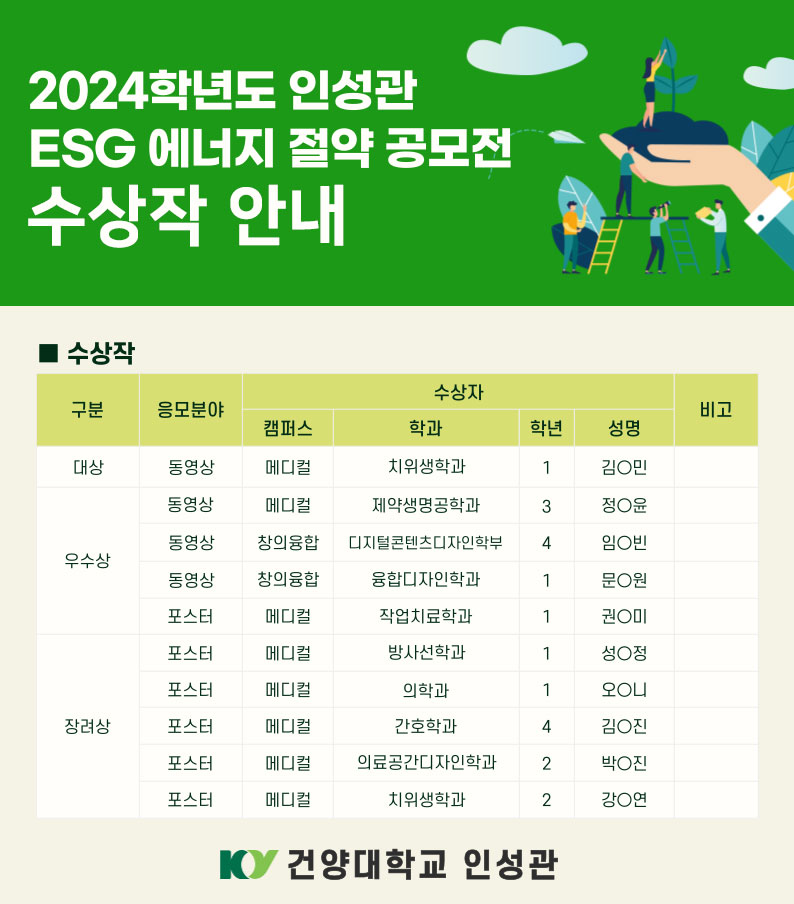 | 제목 | 2024학년도 인성관 ESG 에너지 절약 공모전 수상작 안내 | ||||