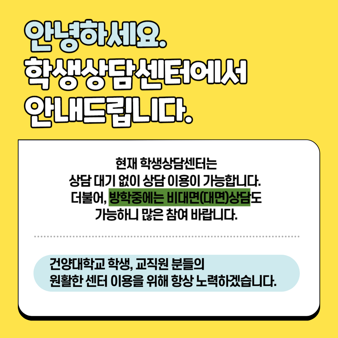 | 제목 | [학생상담센터] 상담 안내 | ||||