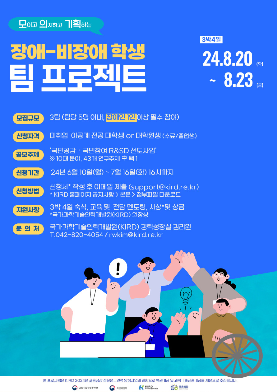 | 제목 | 2024년 장애-비장애 학생 팀 프로젝트 프로그램 모집 안내 | ||||