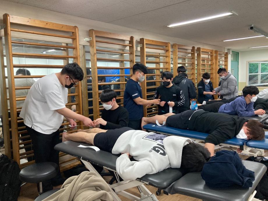 물리치료학과 학생들을 대상으로 스포츠 테이핑, 기능적 마사지, PNF 스트레칭 배우고 실습하는 스포츠 물리치료 동아리 Team Recovery입니다. 복지관 봉사, 마라톤 봉사, MTT교육지원 등 다양한 대외활동을 하며 선후배간의 교류와 해부학 Study를 통해 임상적 지식을 쌓는 것을 목표로 합니다. |