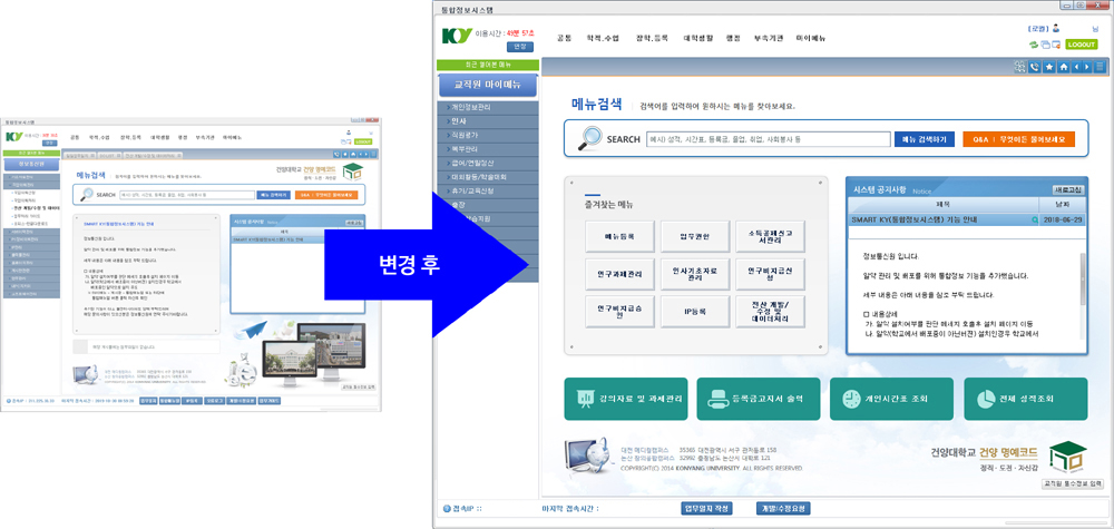 < 통합정보시스템 메인 변경 화면 >