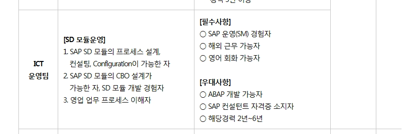 넥센타이어에서 SAP SD 모듈 운영 및 유지보수 경력사원 채용정보입니다.