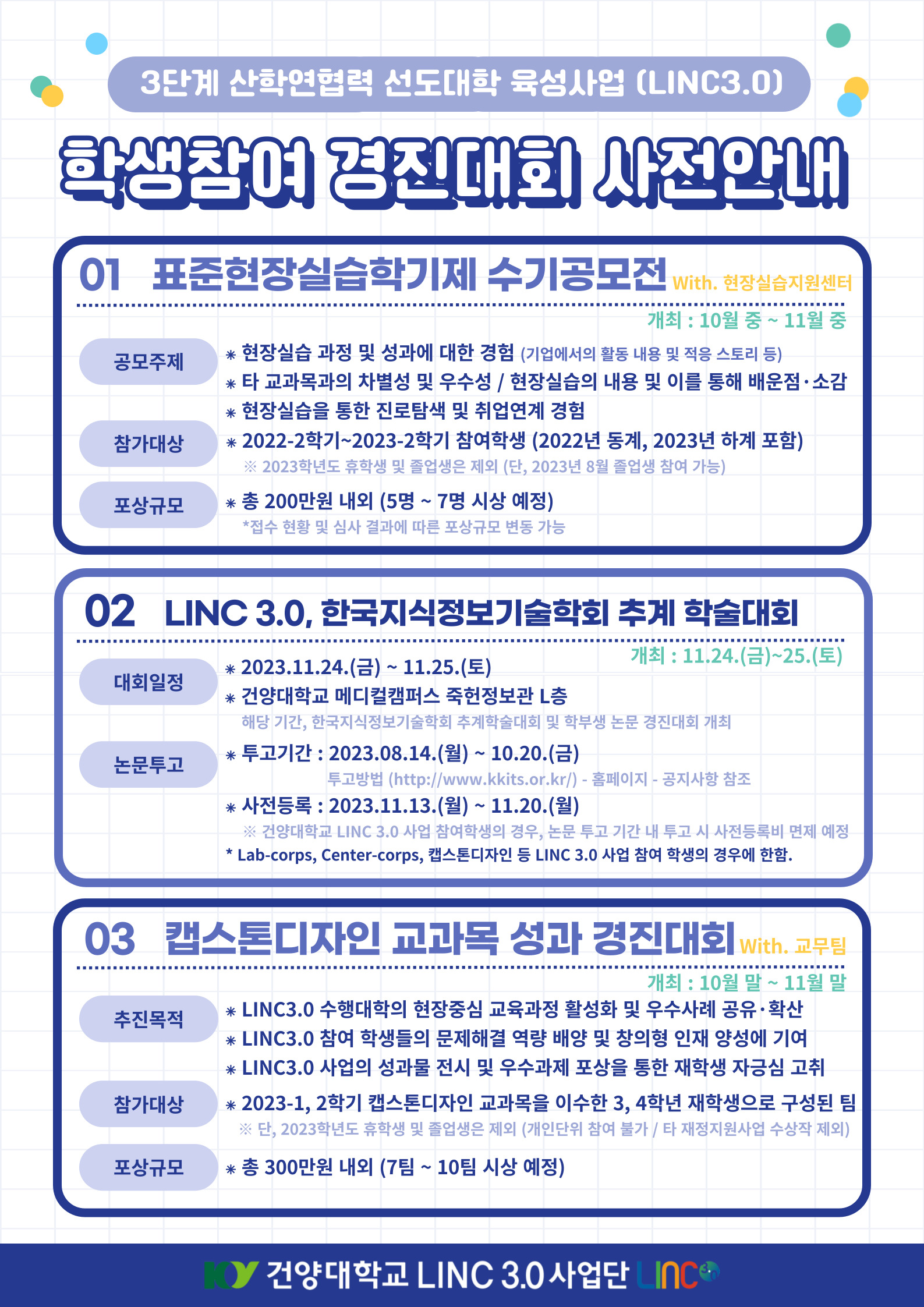 | 제목 | [LINC 3.0 사업단] 2023년도 학생참여 경진대회 사전안내 및 홍보 | ||||