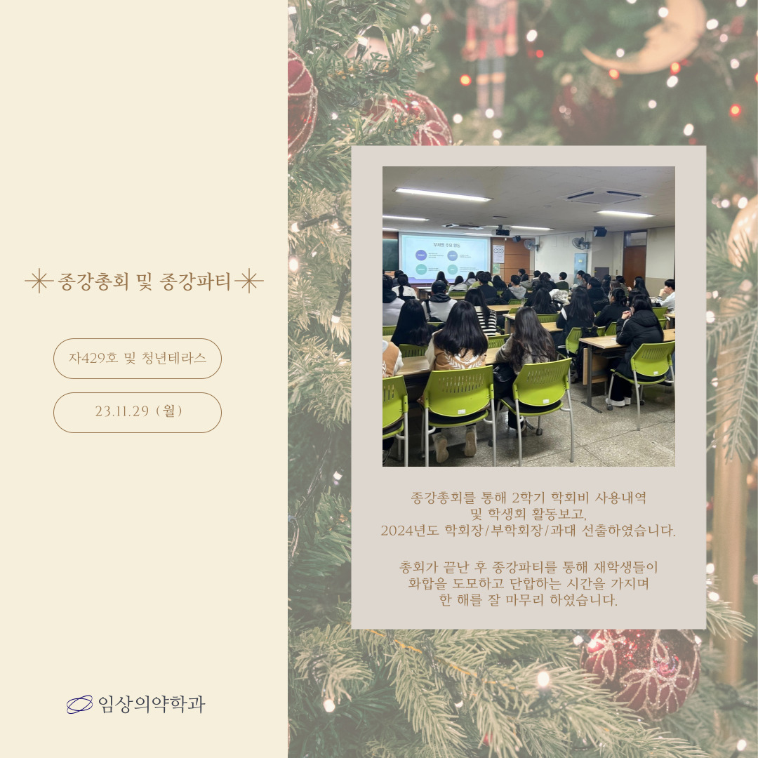 | 작성자 | 임상의약학과 | 등록일 | 2023-12-04 | 조회 | 6115 |