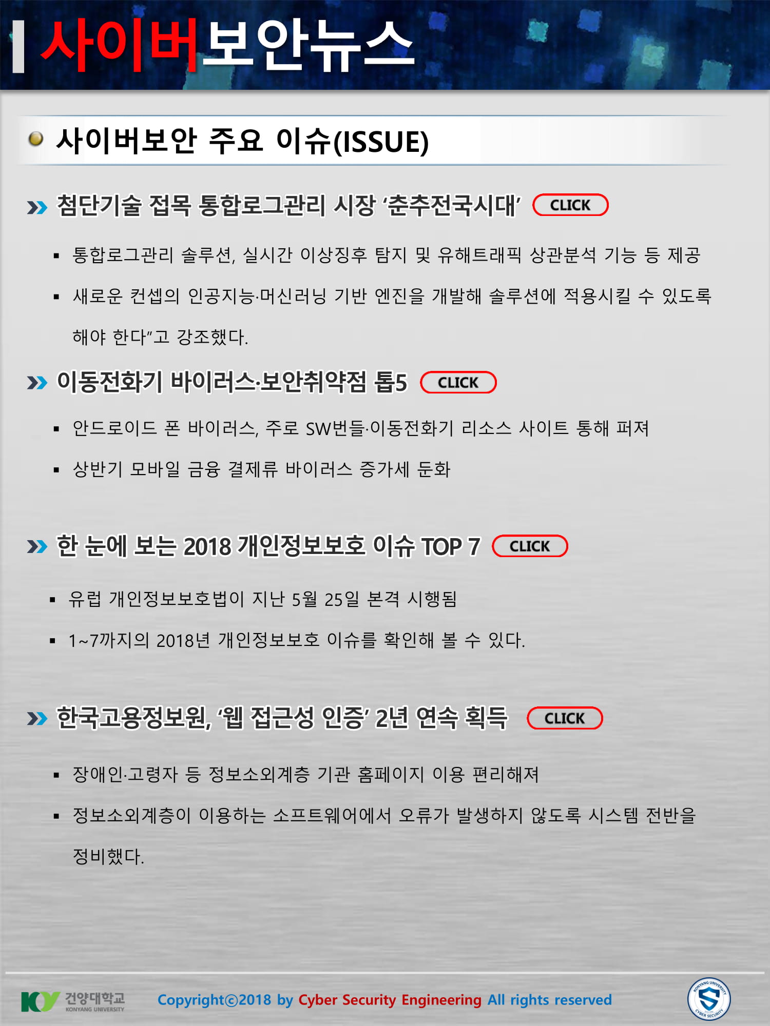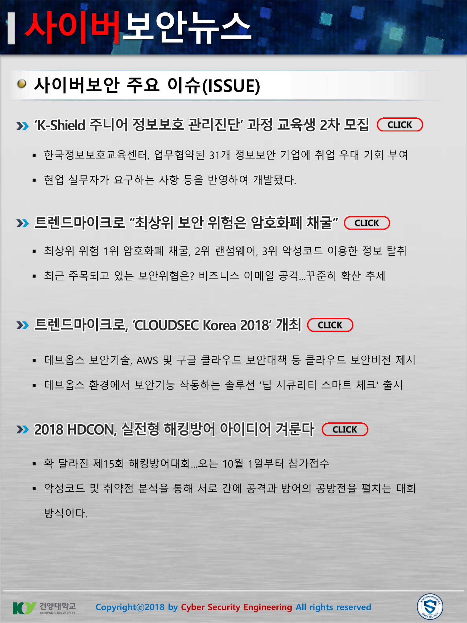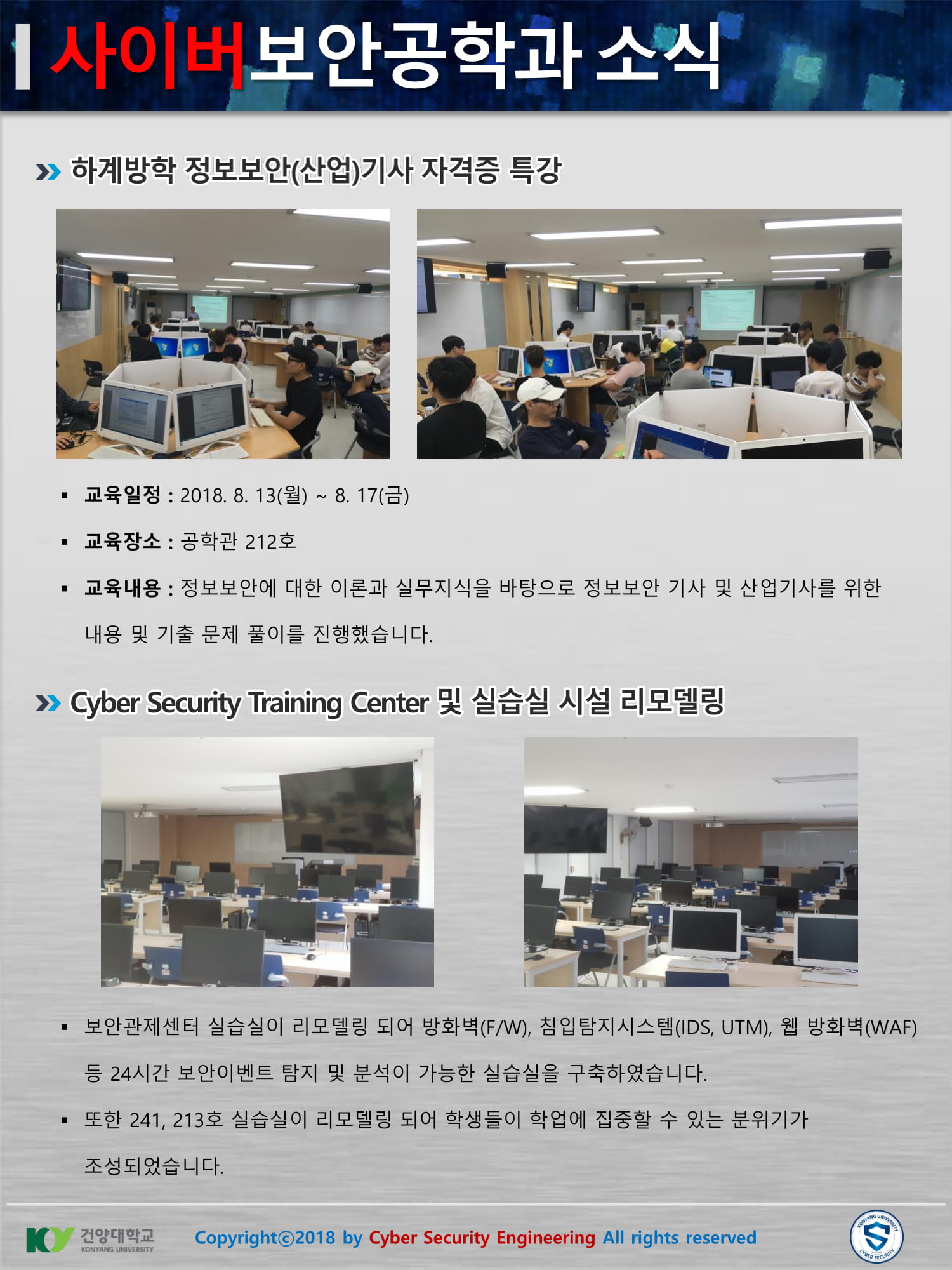 『 사이버보안공학과 보안매거진 2018-5호 』글의 상세내용을 확인하는 표로 제목, 부서명, 등록일, 조회, 첨부, 내용으로 나뉘어 설명합니다.