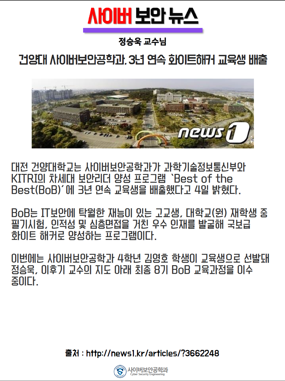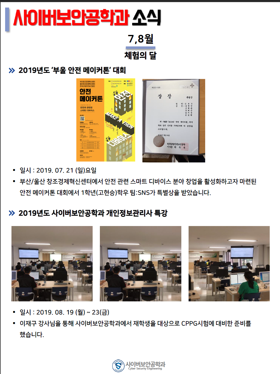 『 사이버보안공학과 보안매거진 2019-3호 』글의 상세내용을 확인하는 표로 제목, 부서명, 등록일, 조회, 첨부, 내용으로 나뉘어 설명합니다.