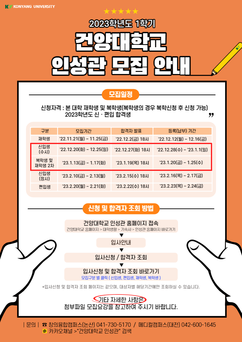 『 2023학년도 1학기 인성관 모집일정_안내 』글의 상세내용을 확인하는 표로 제목, 부서명, 등록일, 조회, 첨부, 내용으로 나뉘어 설명합니다.