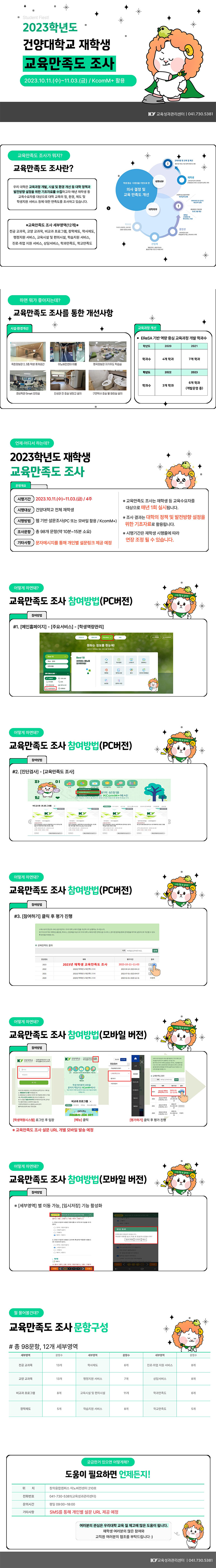 『 2023학년도 교육수요자 만족도 조사 안내 』글의 상세내용을 확인하는 표로 제목, 부서명, 등록일, 조회, 첨부, 내용으로 나뉘어 설명합니다.