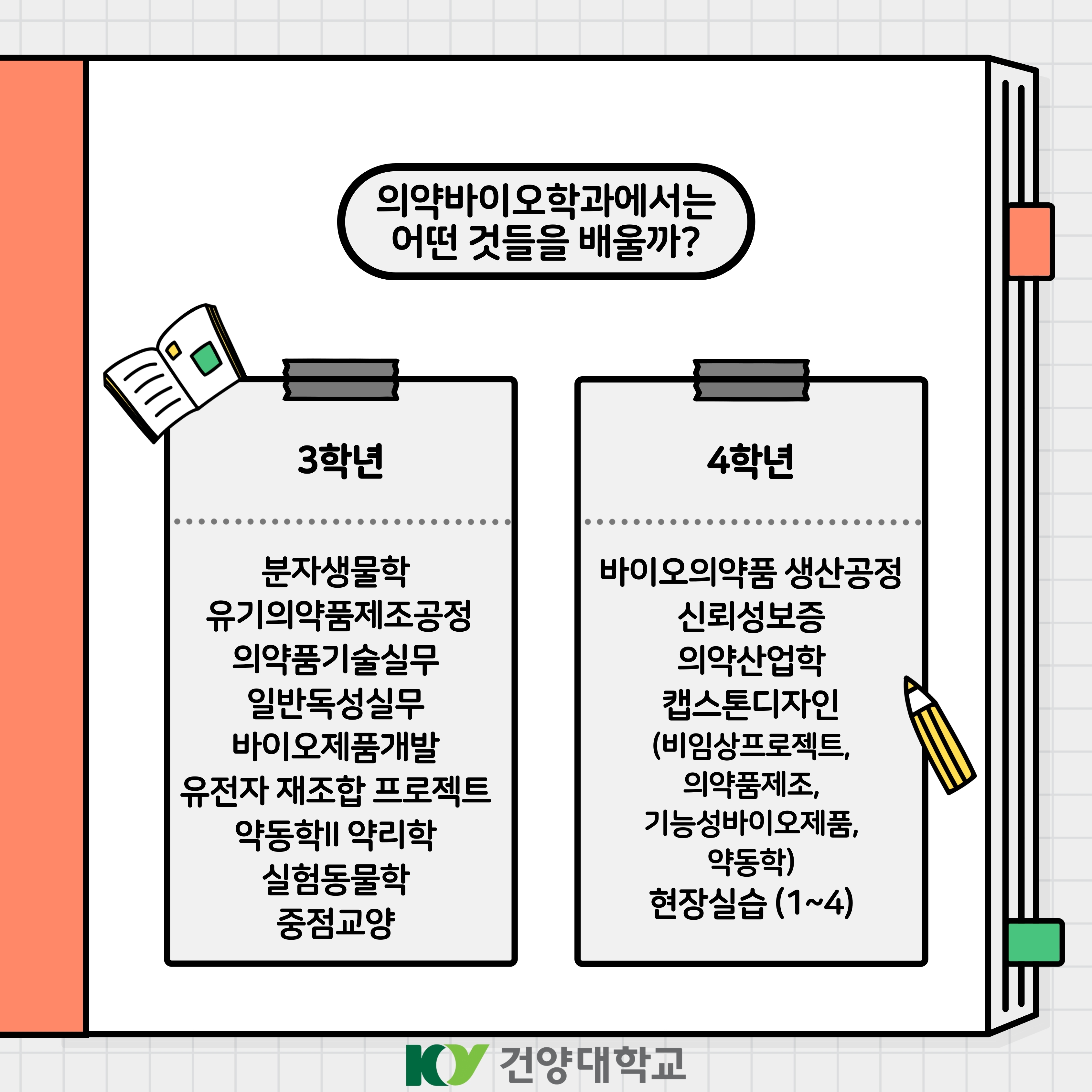 의약바이오학과에서는 어떤 것을 배울까?! 비임상 및 약동학 약리학 그리고 생물, 화학분야를 배울 수 있어요!