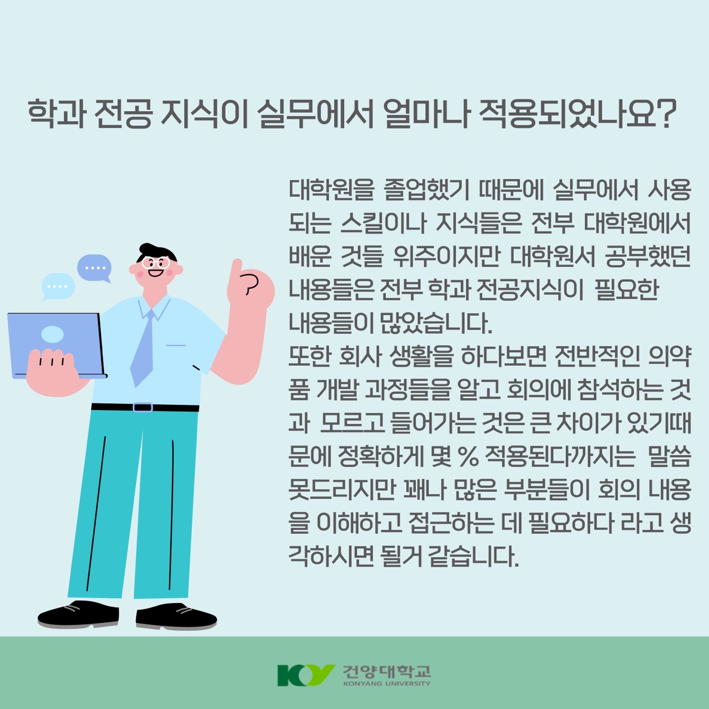 『 의약바이오학과 졸업생 인터뷰 [4편] 』글의 상세내용을 확인하는 표로 제목, 부서명, 등록일, 조회, 첨부, 내용으로 나뉘어 설명합니다.