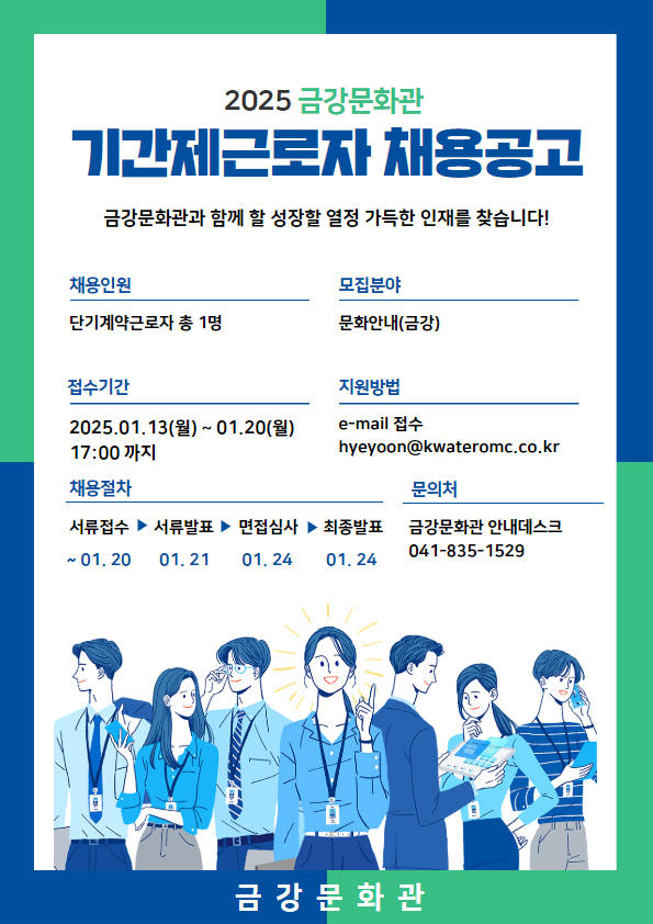 | 제목 | [금강문화관]기간제 근로자 채용 공고(~1/20) | ||||