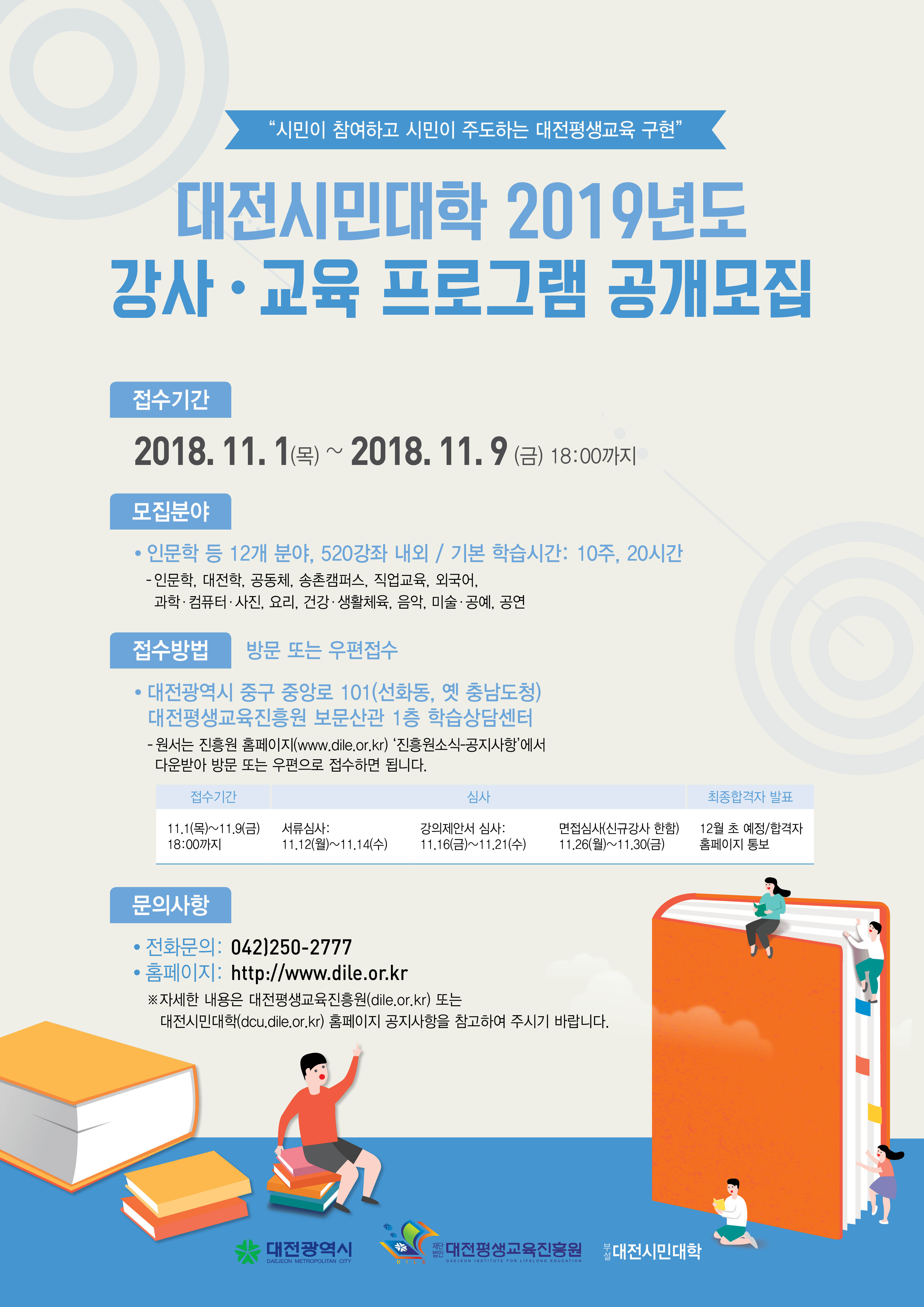 (~11/9)[대전시민대학]2019년도 강사 교육프로그램 공개모집 안내 글의 상세내용