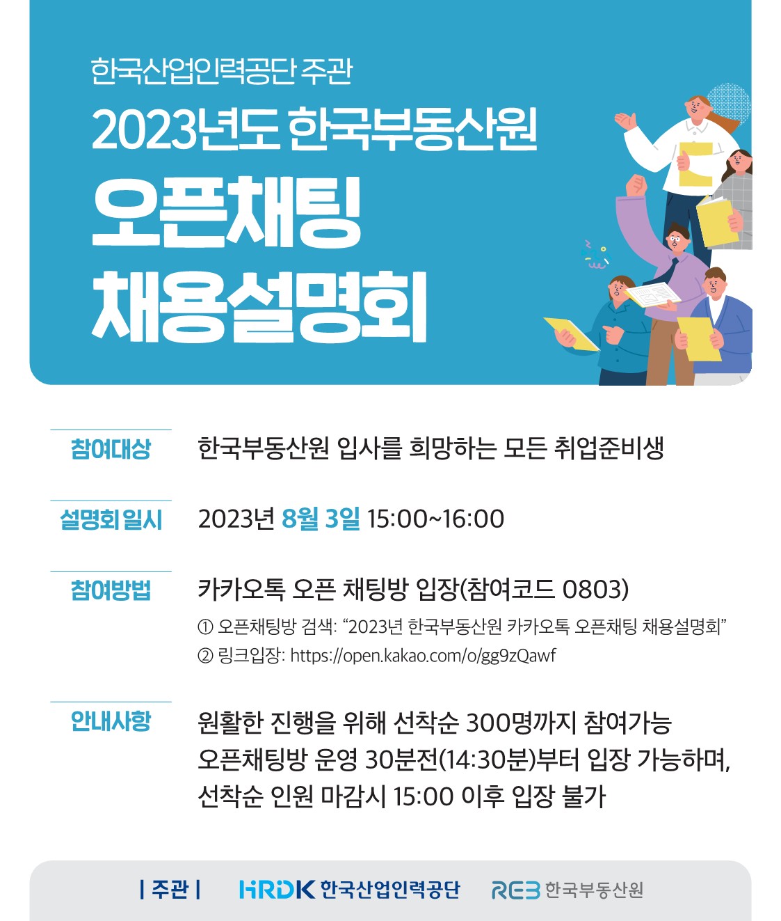 * 8.3(목) 15:00에 카카오톡 오픈채팅을 통해 채용설명회를 운영하오니, 우리 원 채용에 관심있으신 분들은 많이 참여해주세요.