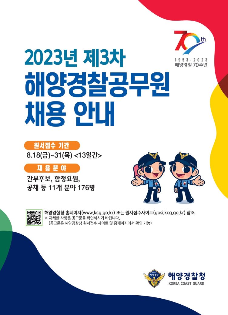 | 제목 | [해양경찰청] 2023년 제3차 해양경찰청 소속 공무원 채용 (~8/31) | ||||