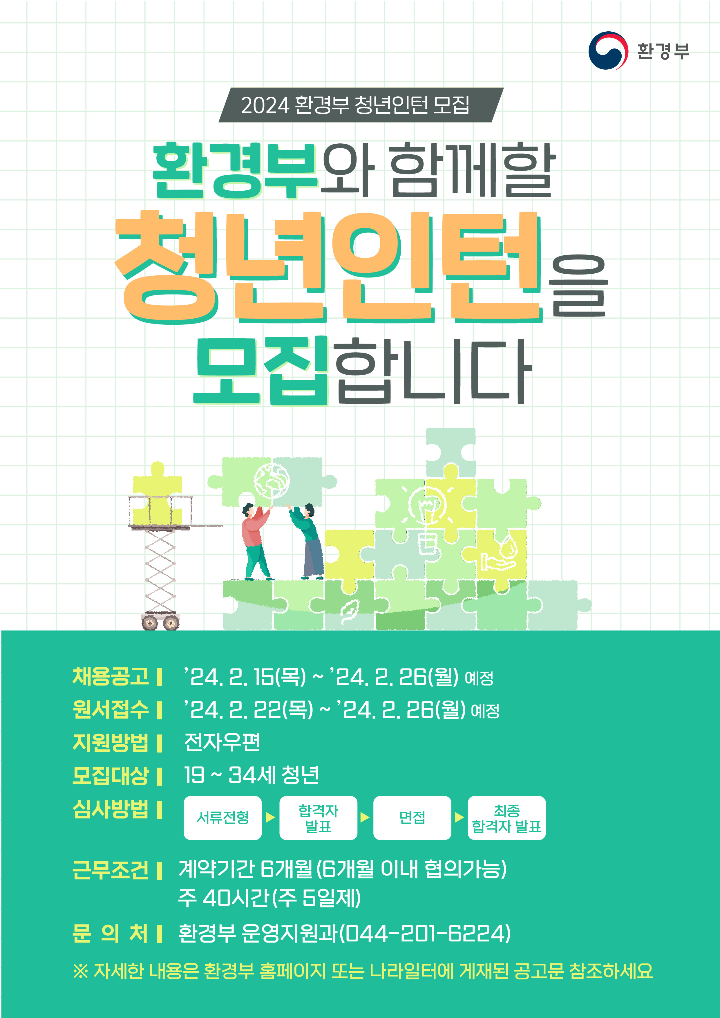 제목 [환경부] 청년인턴 채용 안내 (2/15~2/26)