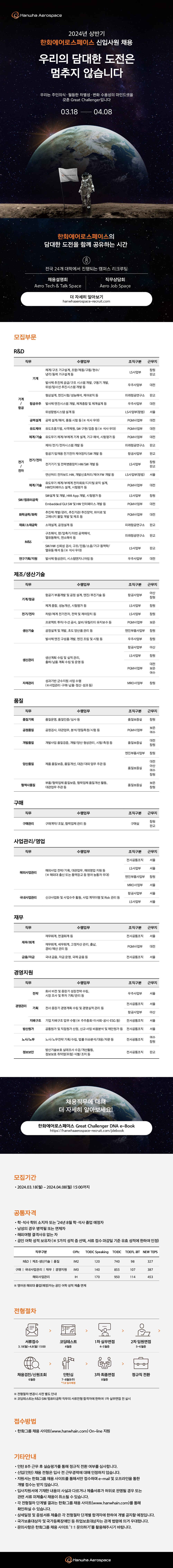 [한화에어로스페이스] 2024년 상반기 신입사원 채용(~4/8)