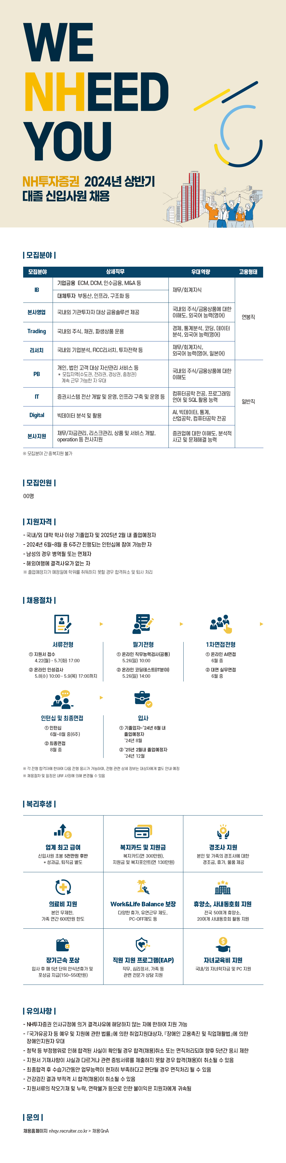| 제목 | [NH투자증권] 2024년 상반기 대졸 신입사원 채용(~5/7) | ||||