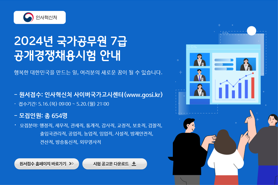 | 제목 | 2024년도 국가공무원 7급 공개경쟁채용시험 원서접수 안내 | ||||