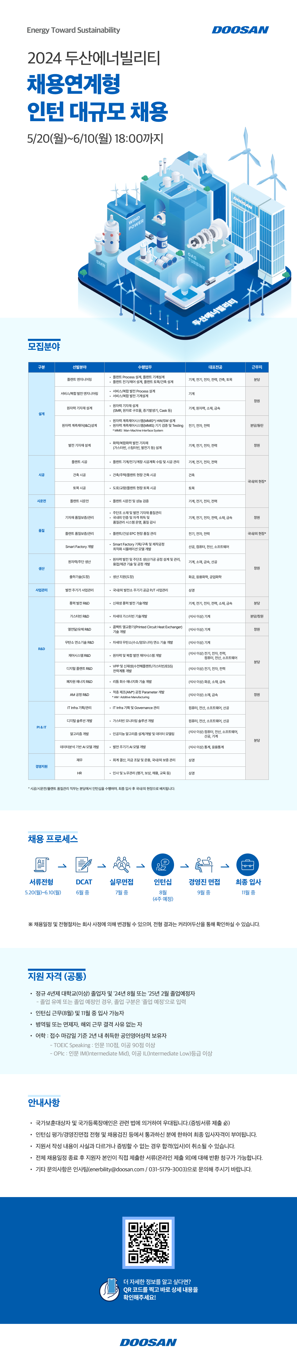 제목 [두산에너빌리티] 2024 채용연계형 인턴 대규모 채용(~6/10)