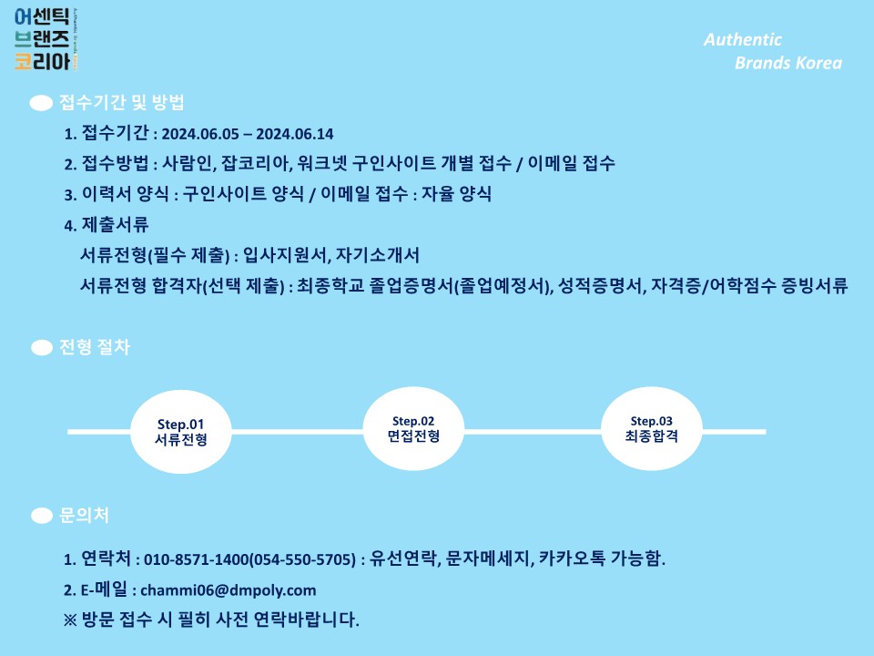 [(주)어센틱브랜즈코리아] 생산관리 채용(~6/14) 글의 상세내용