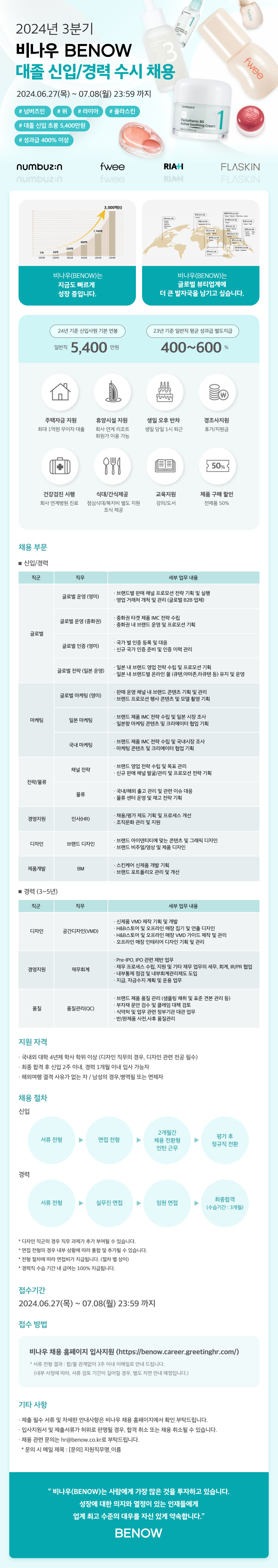 제목 [BENOW] 2024년 3분기 비나우 대졸 신입/경력 수시 채용(~7/8)