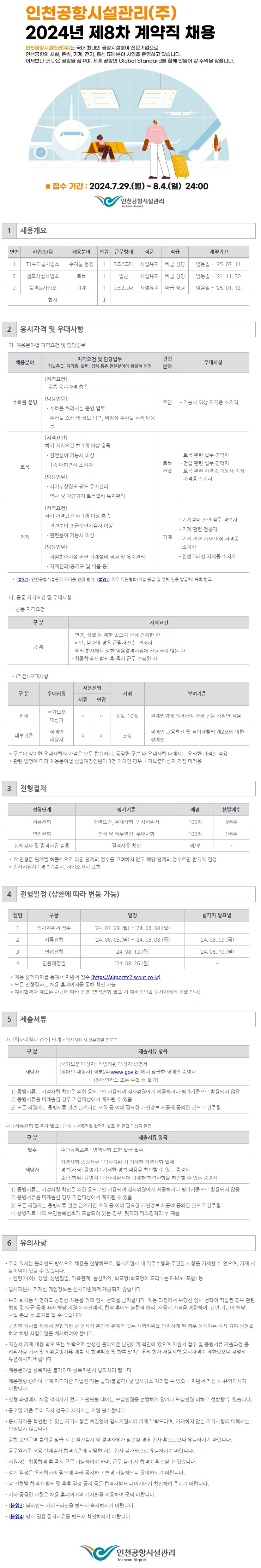 [인천공항시설관리(주)] 2024년 제8차 계약직 채용(~8/4) 글의 상세내용