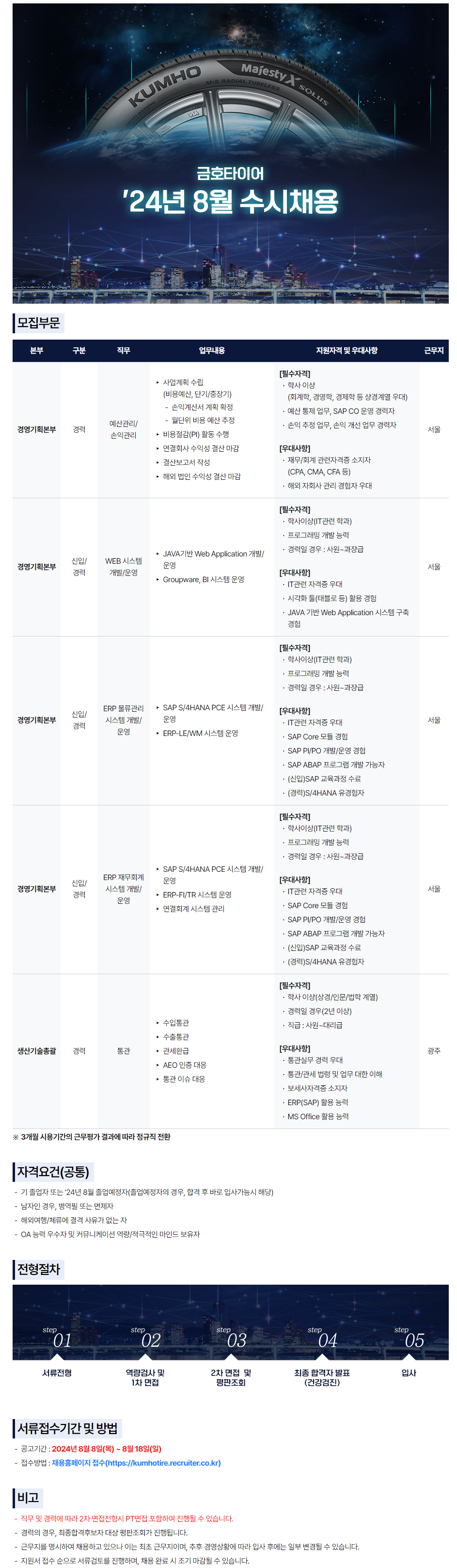 제목 [금호타이어] 24년 8월 수시채용(~8/18)