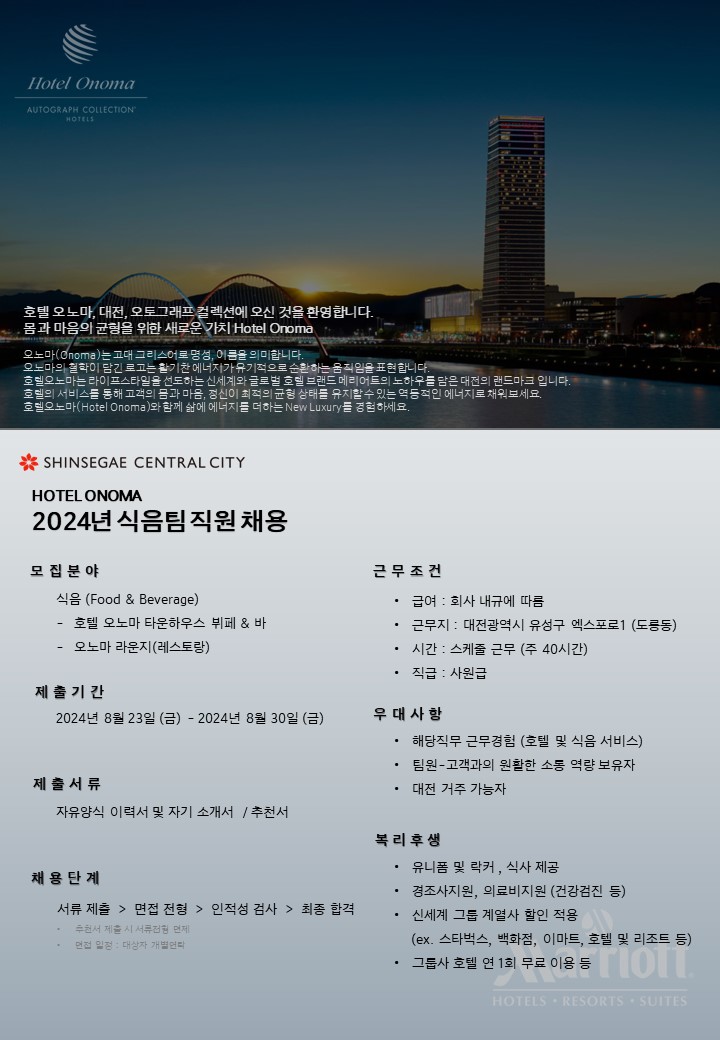 [호텔 오노마] 2024 식음팀 직원 채용(~8/30_ 글의 상세내용