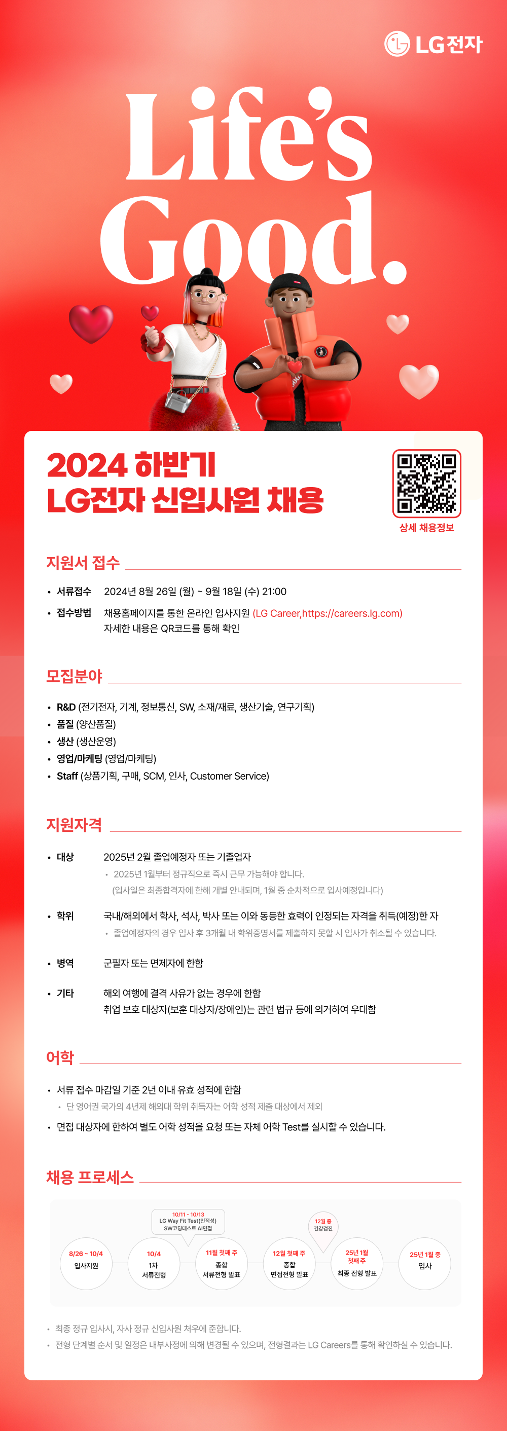 [LG전자] 2024년 하반기 신입사원 채용(~9/18) 글의 상세내용