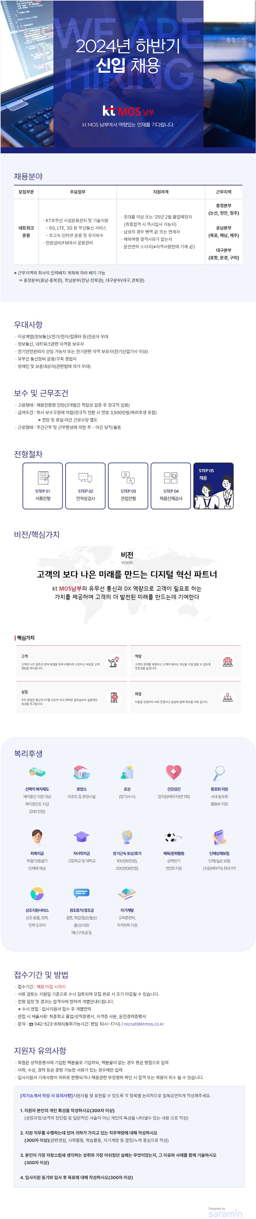 [(주)케이티엠오에스남부] 2024년 하반기 신입 채용(채용시까지) 글의 상세내용