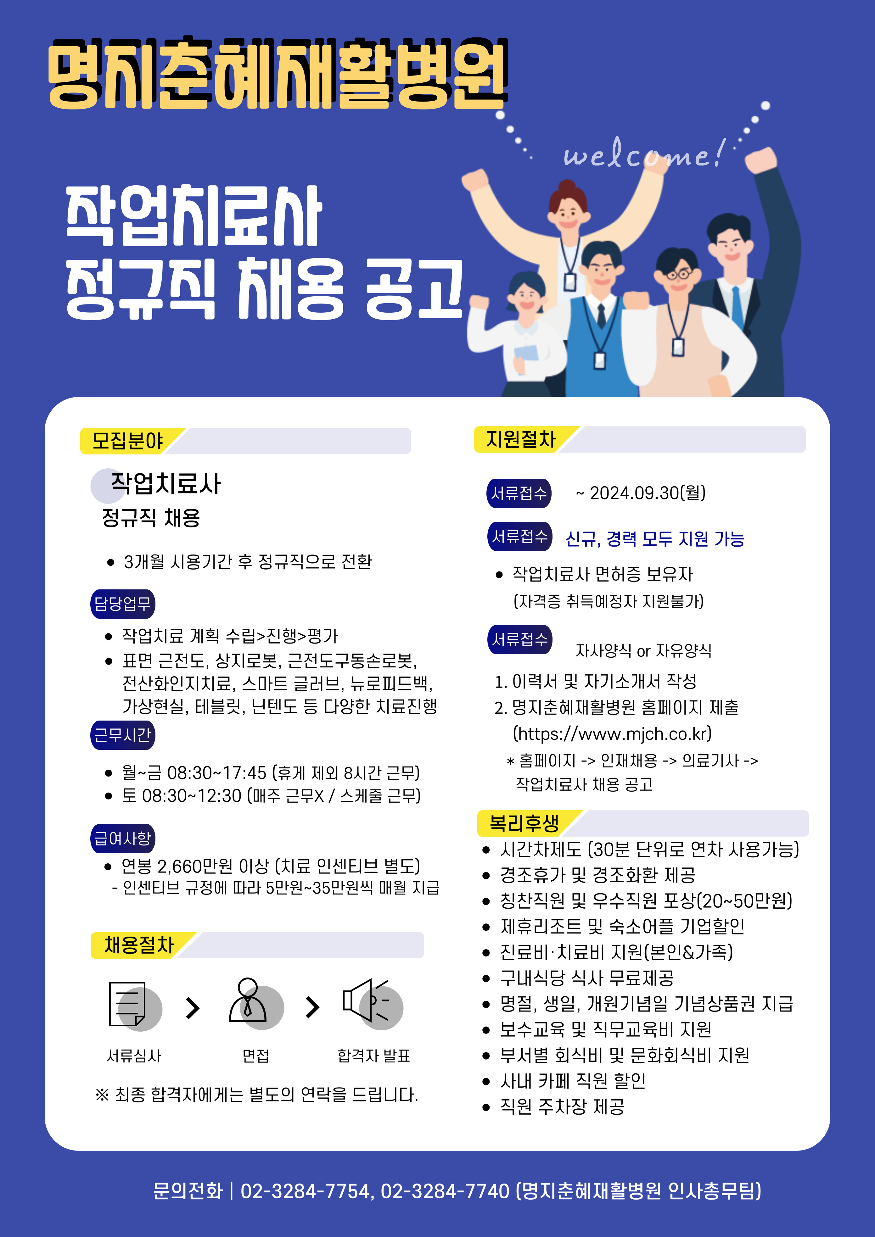 [명지춘혜재활병원] 작업치료사 채용(~9/30) 글의 상세내용