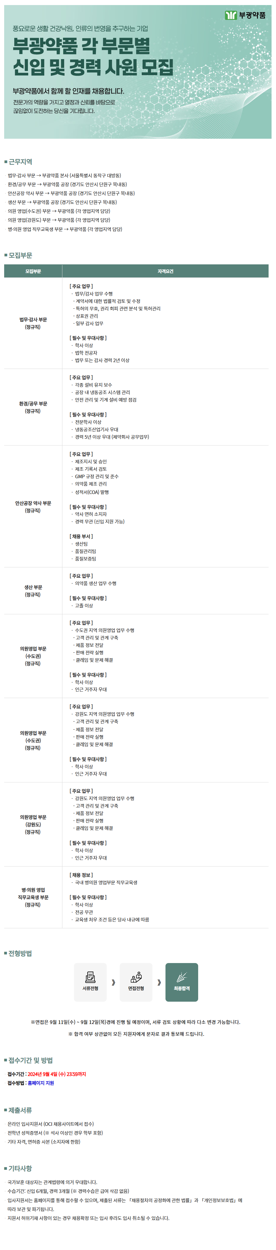제목 [부광약품]각 부문별 신입 및 경력 사원 모집(~9/4)