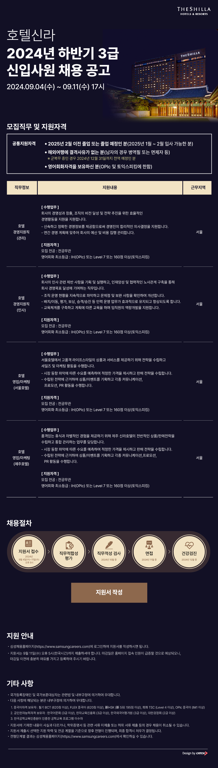 제목 [호텔신라]2024 하반기 3급 신입사원 채용(~9/11)