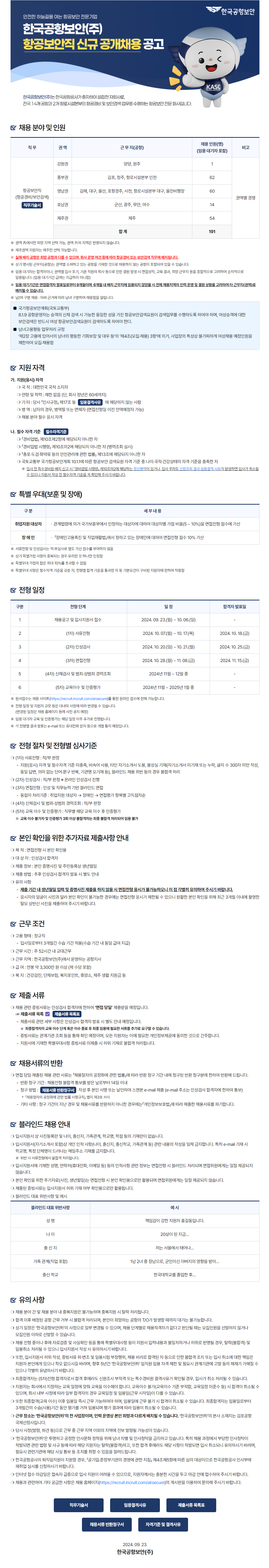 [한국공항보안(주)]항공보안직 신규 공개채용(~10/6) 글의 상세내용