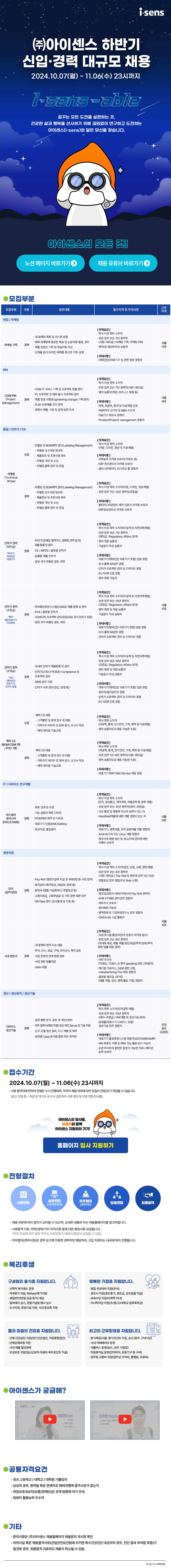제목 [아이센스]2024년 하반기 신입ㆍ경력 대규모 채용(~11/6)