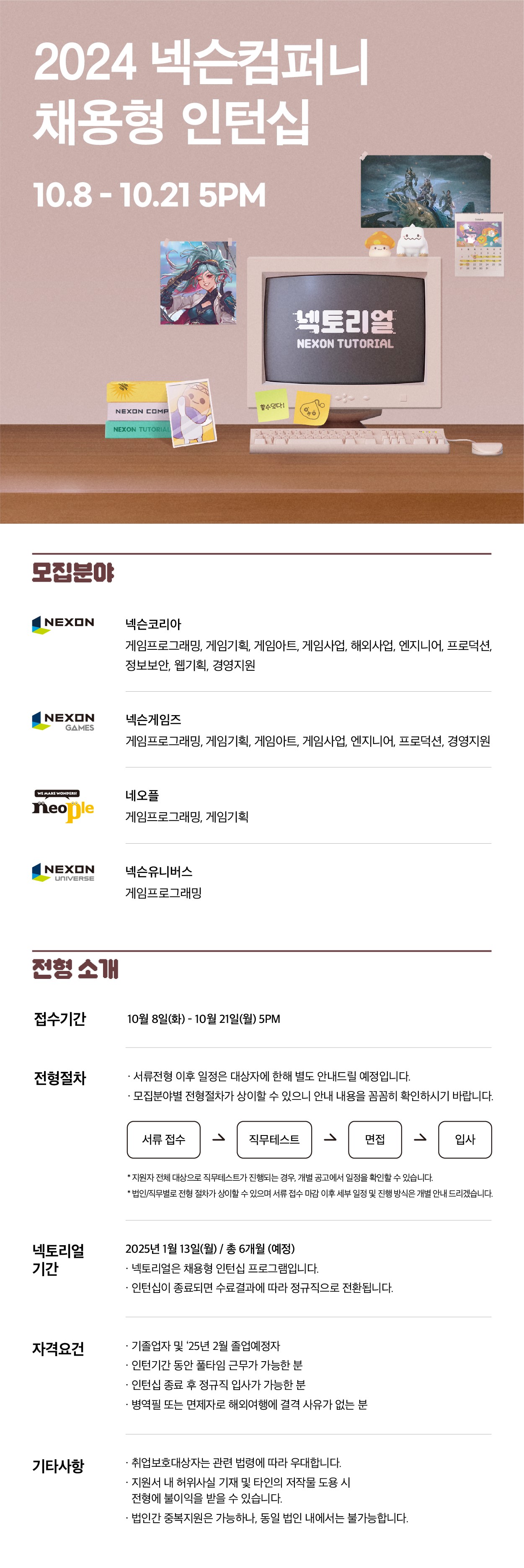 [넥슨컴퍼니]2024 채용형 인턴십 <넥토리얼>(~10/21) 글의 상세내용
