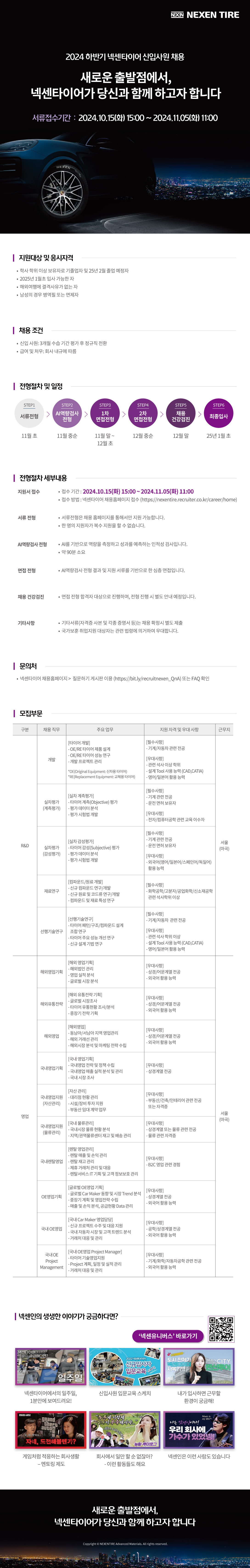 제목 [넥센타이어]2024년 하반기 신입 공채(~11/5)