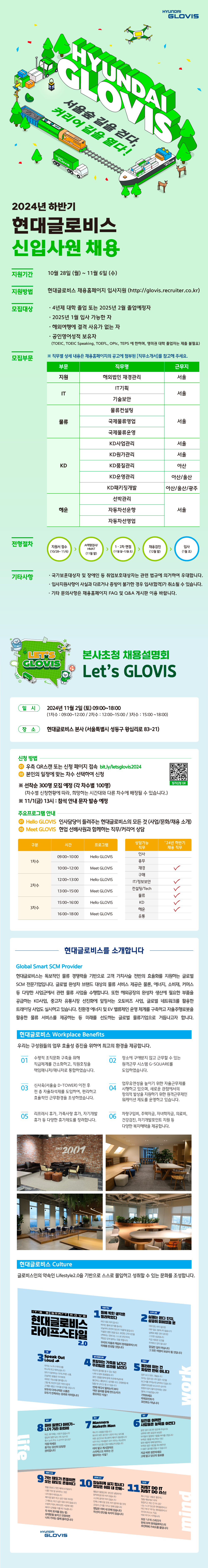 [현대글로비스]2024년 하반기 신입사원 모집(~11/6) 글의 상세내용