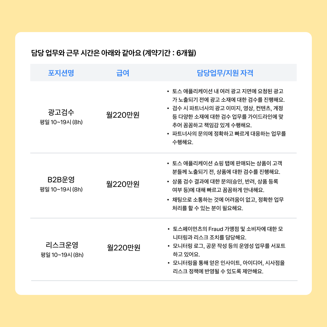 [토스씨엑스]사무보조 ASAP모집(6개월/1년)(채용시마감) 글의 상세내용