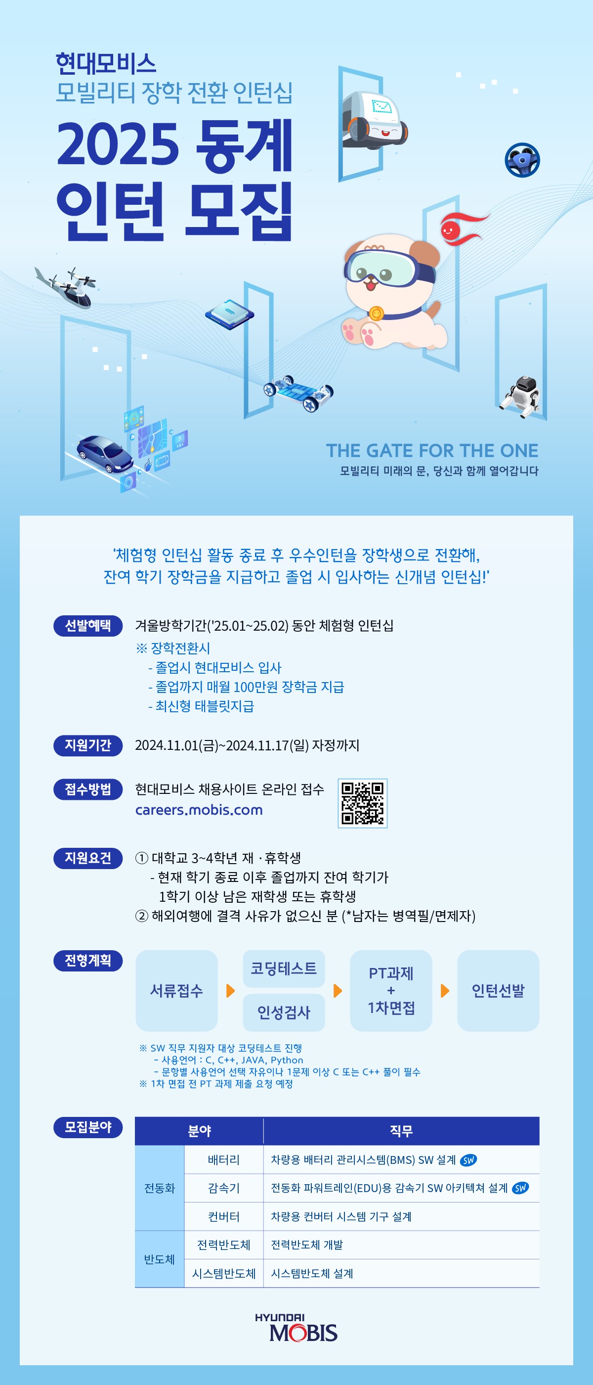 [현대모비스]2025 동계 인턴 모집(~11/17) 글의 상세내용