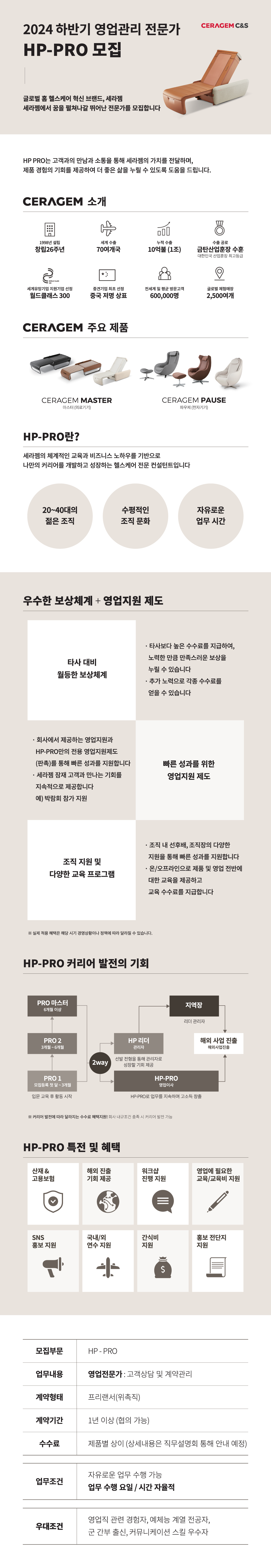 제목 [세라젬]2024 하반기 영업관리 전문가 모집(~12/31)
