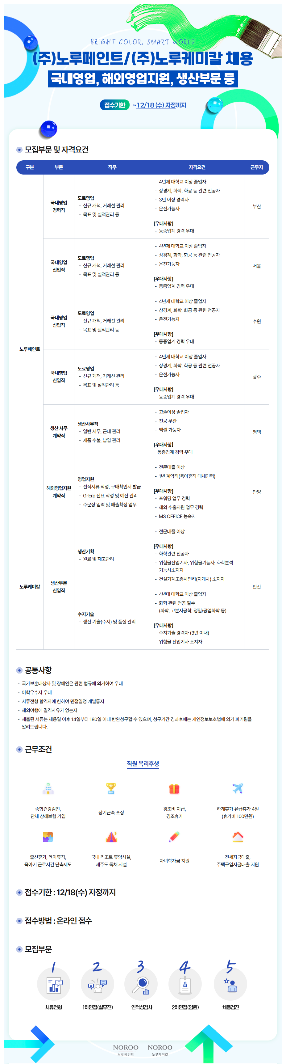 제목 [(주)노루페인트/(주)노루케미칼]신규직원 채용(~12/18)