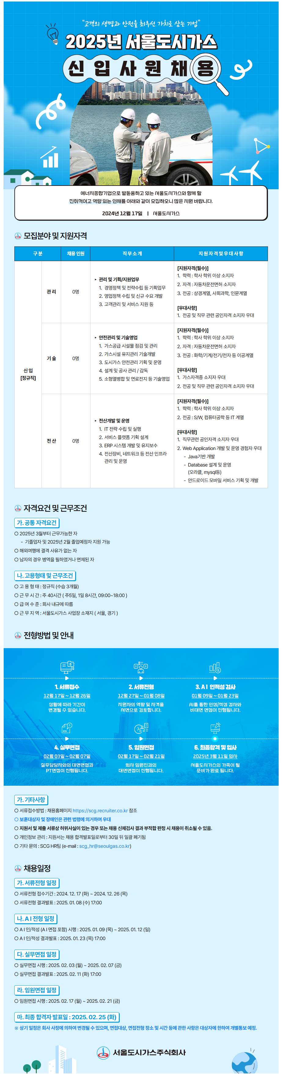 [서울도시가스]신규직원 채용(~12/26) 글의 상세내용