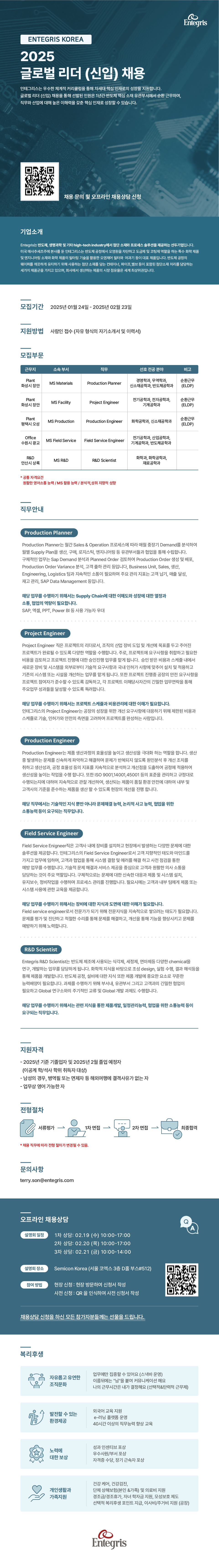 | 제목 | [인테그리스코리아]2025 글로벌 리더 (신입) 채용(~2/23) | ||||