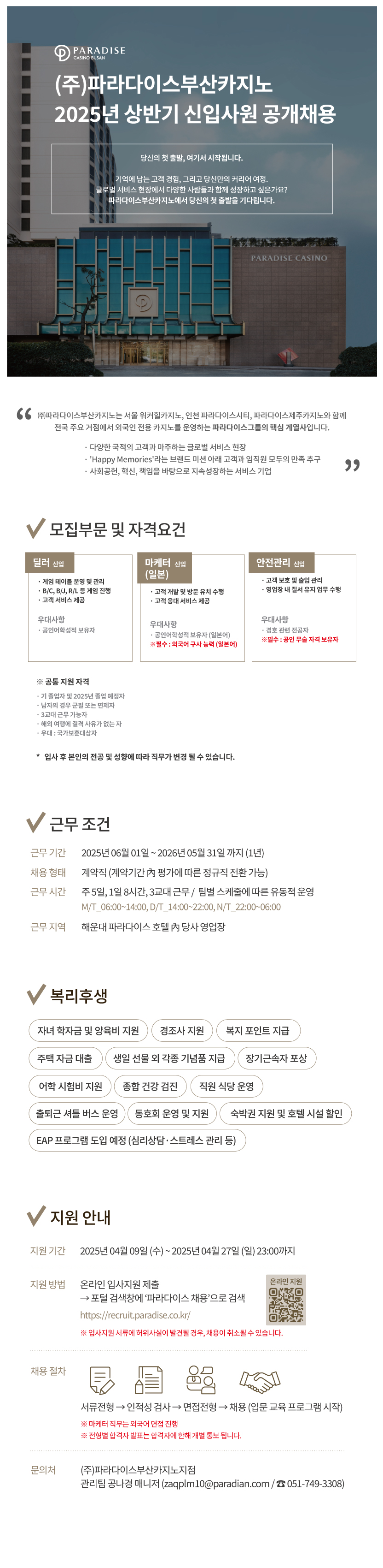 [파라다이스부산카지노]2025년 상반기 신입사원 공개채용(~5/31) 글의 상세내용