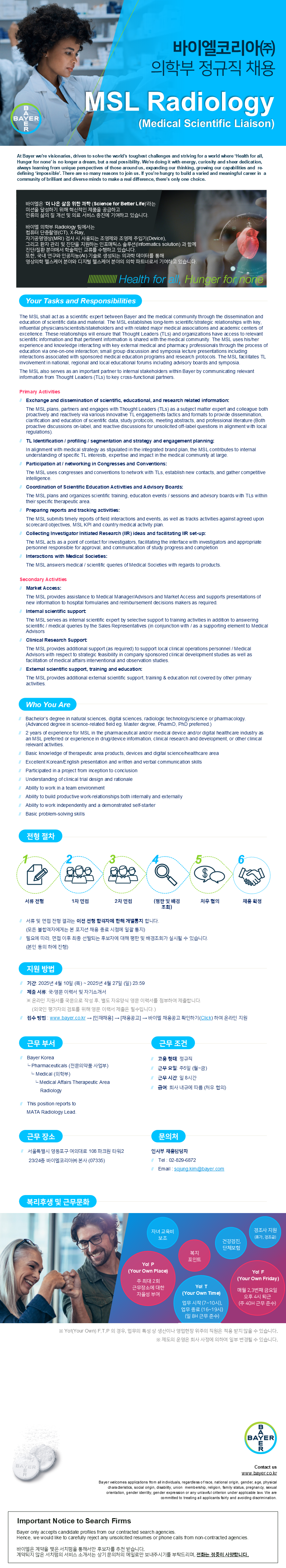 제목 [바이엘코리아]의학부 MSL Radiology 채용(~4/27)